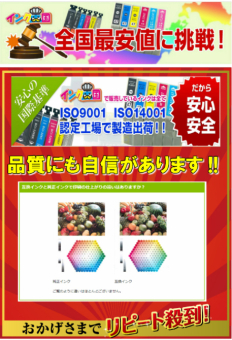 IC92L 4色セット 互換プリンターインク EPSON 『全国最安値に挑戦!!』 当店の互換インクカートリッジは国際基準ISO9001/ISO14001認定工場で生産しておりますので、品質にも自信がございます。 純正インクと互換インクの印刷の違いは、プロの目でも見分けがつかないと言われています。 最近では、長く保存する書類や写真などには純正インク、普段使いには互換インクといった使い分けをされている方も増え、多くの方が当店の互換インクをご利用頂いております。 万が一、商品に何か欠陥が見つかった場合にも、万全の態勢にて保証させて頂きます。(安心の1年保証) |